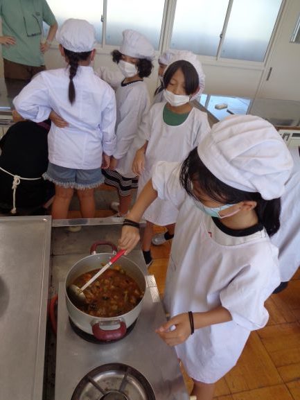 ②11日(3年生):みんなで育てたいろいろな野菜を使って夏カレー野菜を作りました。おいしかったよ!