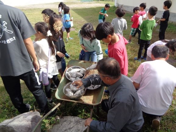 ①地域の方のご指導のもと、春に植えた苗が大きく育ちました