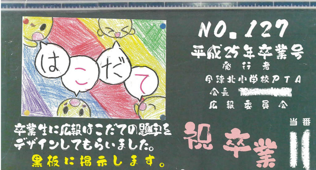「はこだて」タイトル集を更新しました。校長先生の書や版画、児童のみなさんのデザイン、人文字など様々。