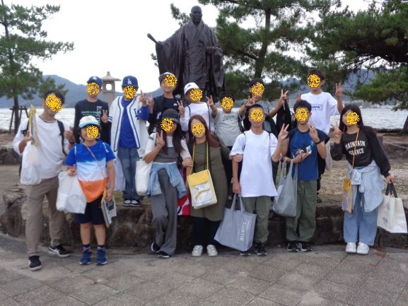 ②「原爆の子」の像の前で平和祈念。多くの命を一瞬で奪い、今なお苦しむ人がおられる現実を事前学習などを通して学びました。戦争、原爆による被害を2度と起こしてはいけないという強い想いを改めて持ったひと時でした。