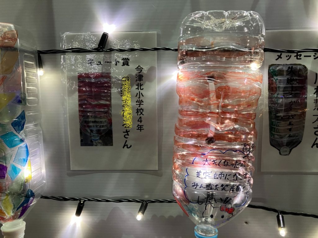 ①北小、東小、今中のみなさんが将来の夢をペットボトルに