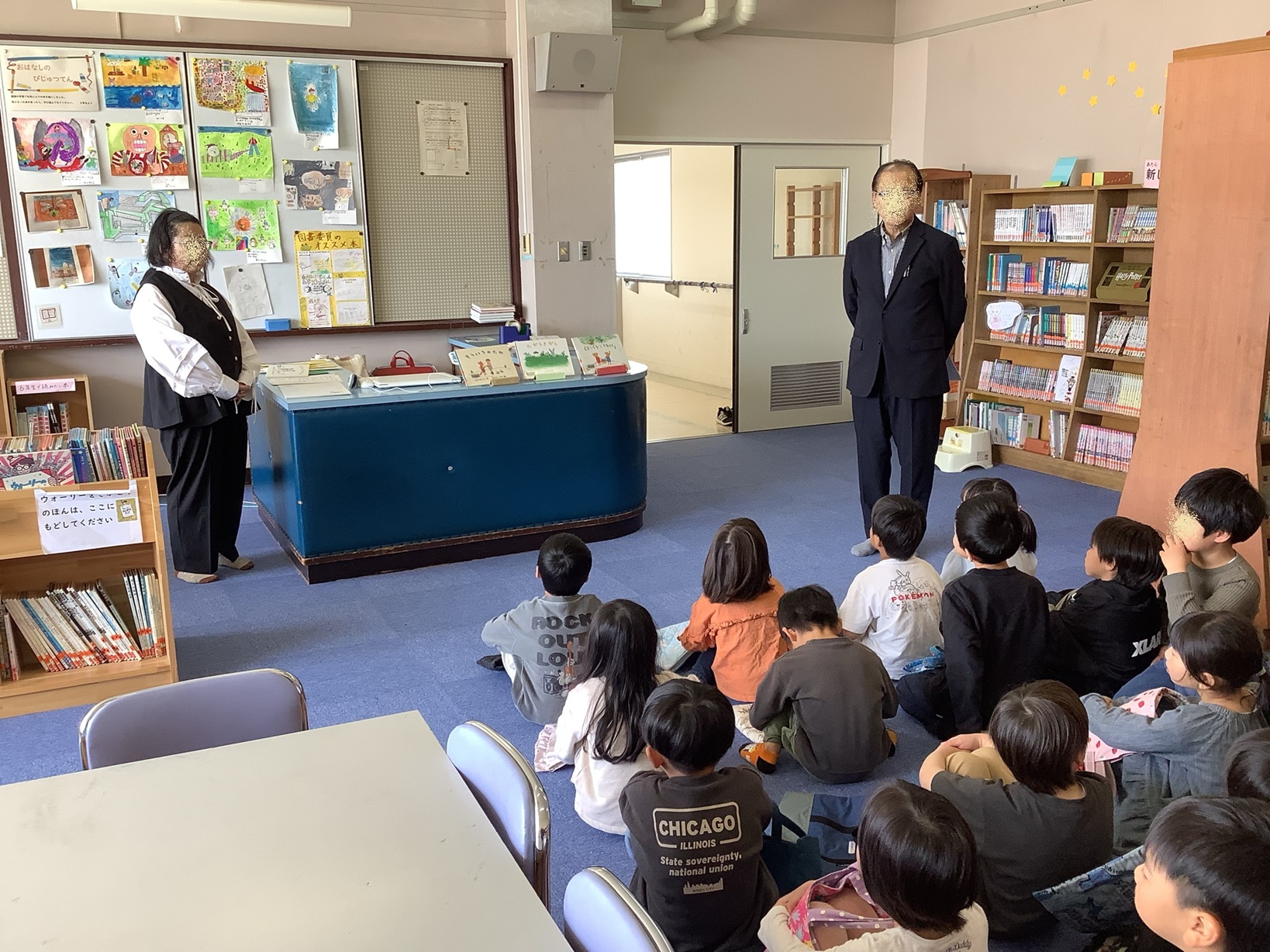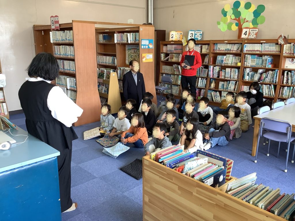 ⑤司書さんのお話を興味津々で聞く子どもたち。素敵な本との出会いがあるといいですね。