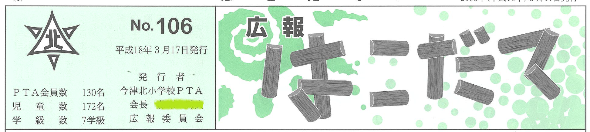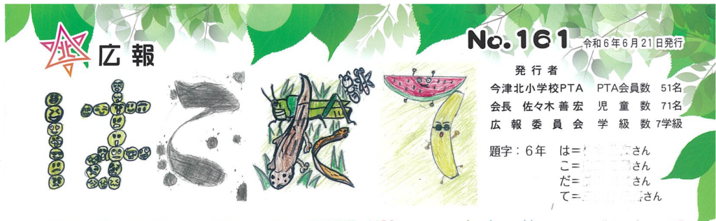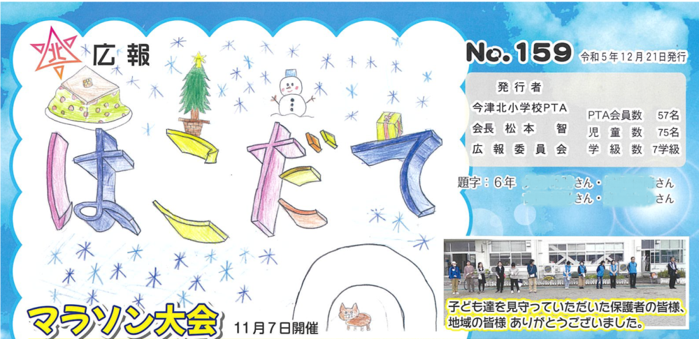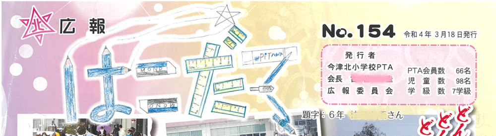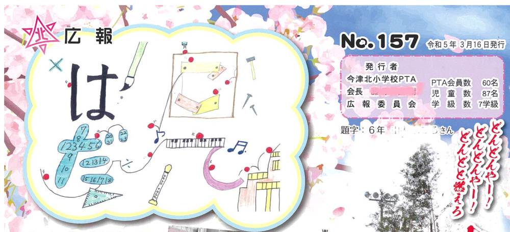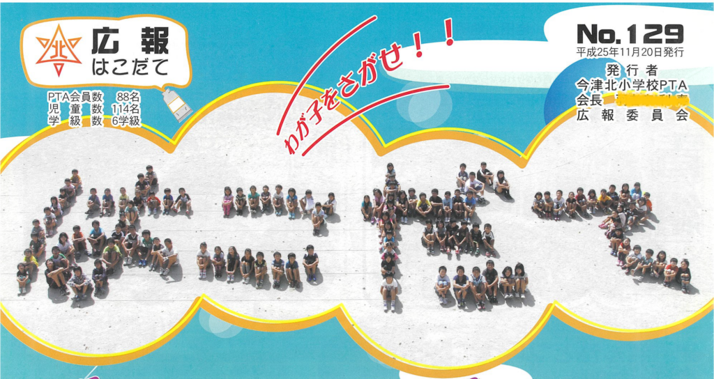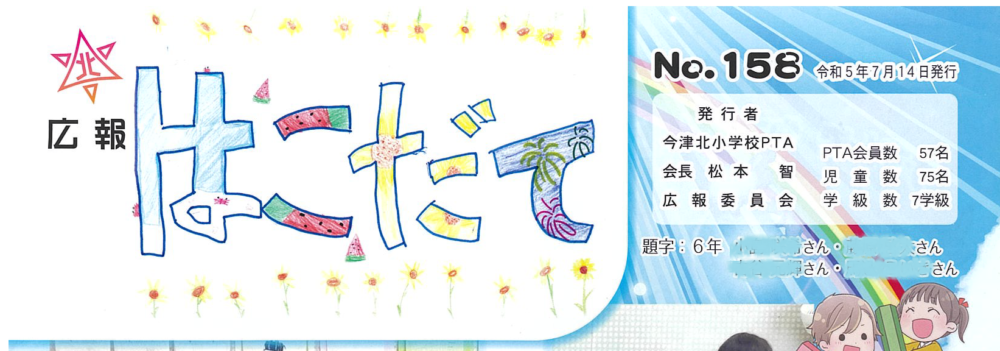 現在主流の児童のみなさんによるデザインタイトル。一人一文字をかいてもらって組み合わせたり、1号分をみんなでデザインしたりとアイディアいっぱい!