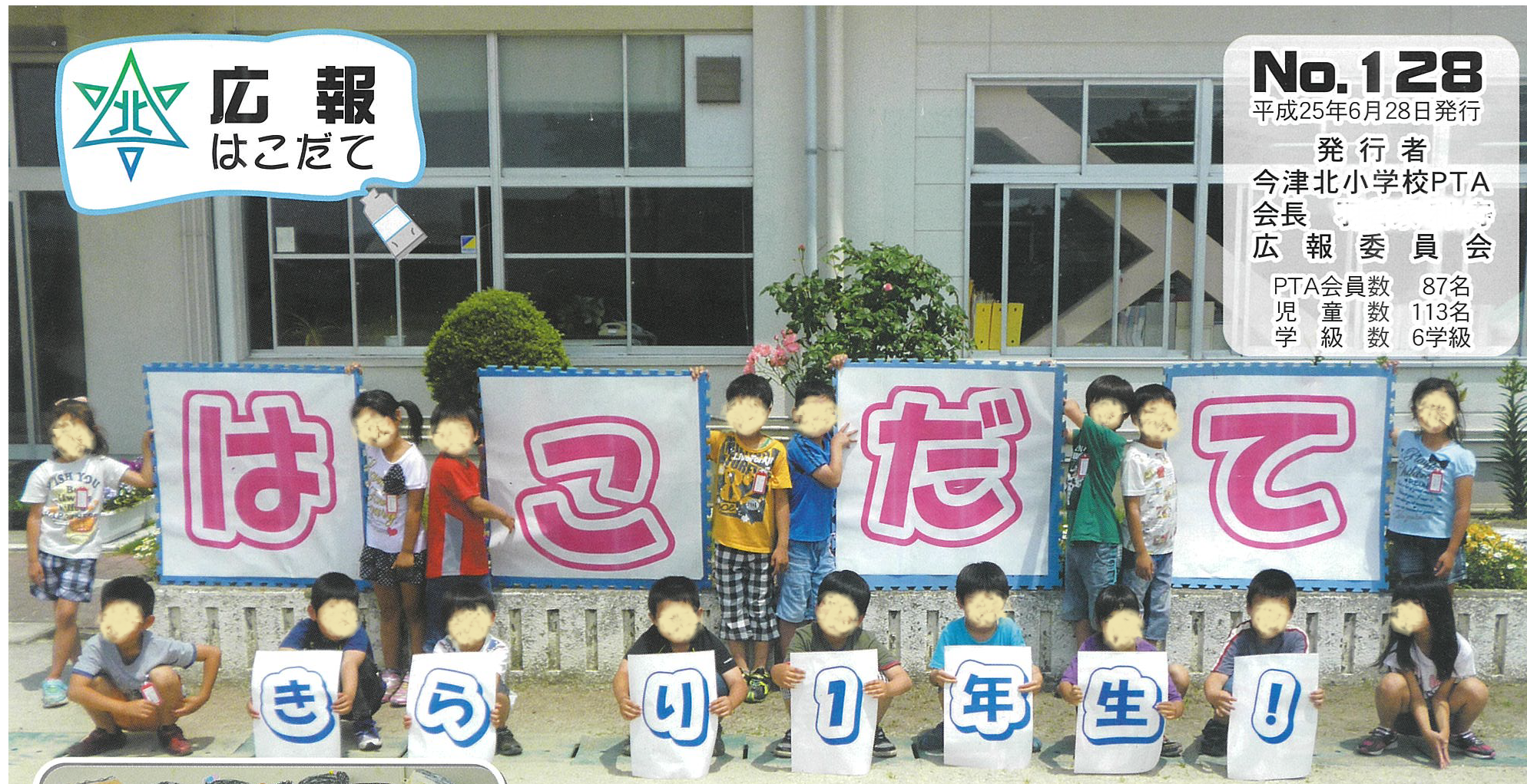 変わりダネ版。入学生による人文字。下段は100号記念で過去のタイトルを特集しています。